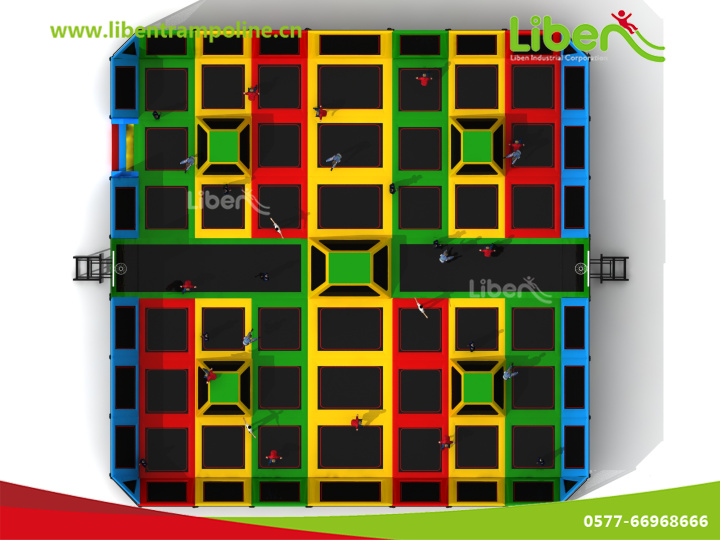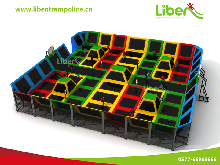 蹦床,根据不同的年龄可设计不同的功能区域,最普通的是自由弹跳区域,还有躲避球区域,蜘蛛塔区域,专业蹦床等各种不同区域,这些区域可根据客人要求设计布局