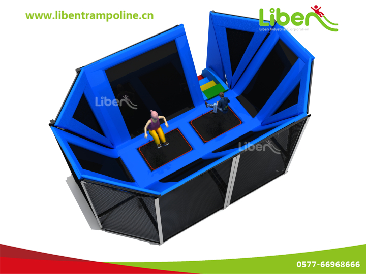 蹦床,根据不同的年龄可设计不同的功能区域,最普通的是自由弹跳区域,还有躲避球区域,蜘蛛塔区域,专业蹦床等各种不同区域,这些区域可根据客人要求设计布局