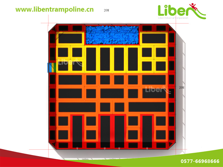 蹦床,根据不同的年龄可设计不同的功能区域,最普通的是自由弹跳区域,还有躲避球区域,蜘蛛塔区域,专业蹦床等各种不同区域,这些区域可根据客人要求设计布局