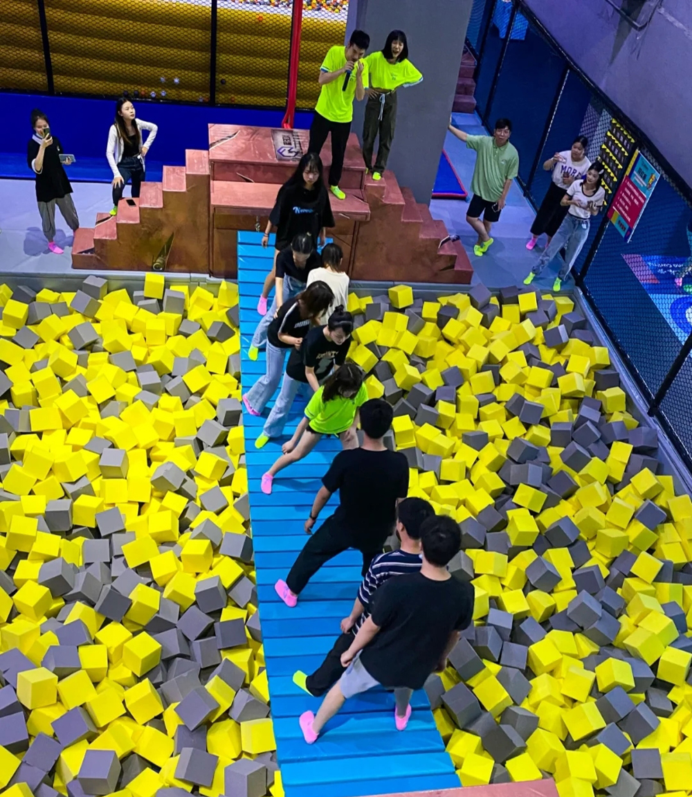 室内蹦床公园,是一个综合性,设备多样化的场馆??梢越型沤ㄔ硕屎锨嗌倌?、儿童,以及成人公司单位团队拓展训练,打造团队配合理念,以游戏,训练技巧达到团队协作,配合目的。