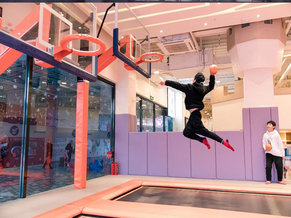 灌篮高手区,你的感受远远不止这些,利用蹦床反弹力飞身起跃将球投入篮筐,轻轻松松变身空中灌篮高手,体验飞身一跃的自由与愉悦。