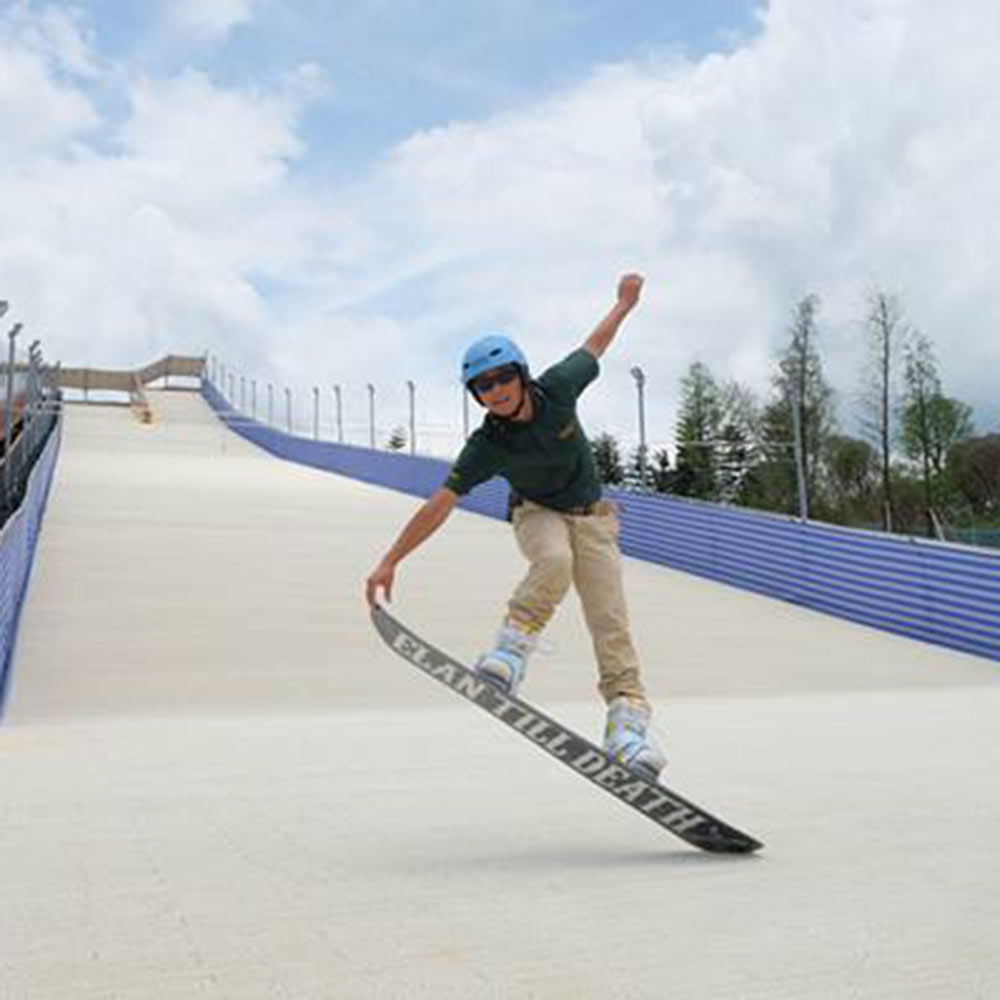 一种厚约几公分的金属加塑料组合成的特殊地面让滑雪者使用与滑真雪相同的雪板与技巧完成滑雪动作。这种特殊地面被称为