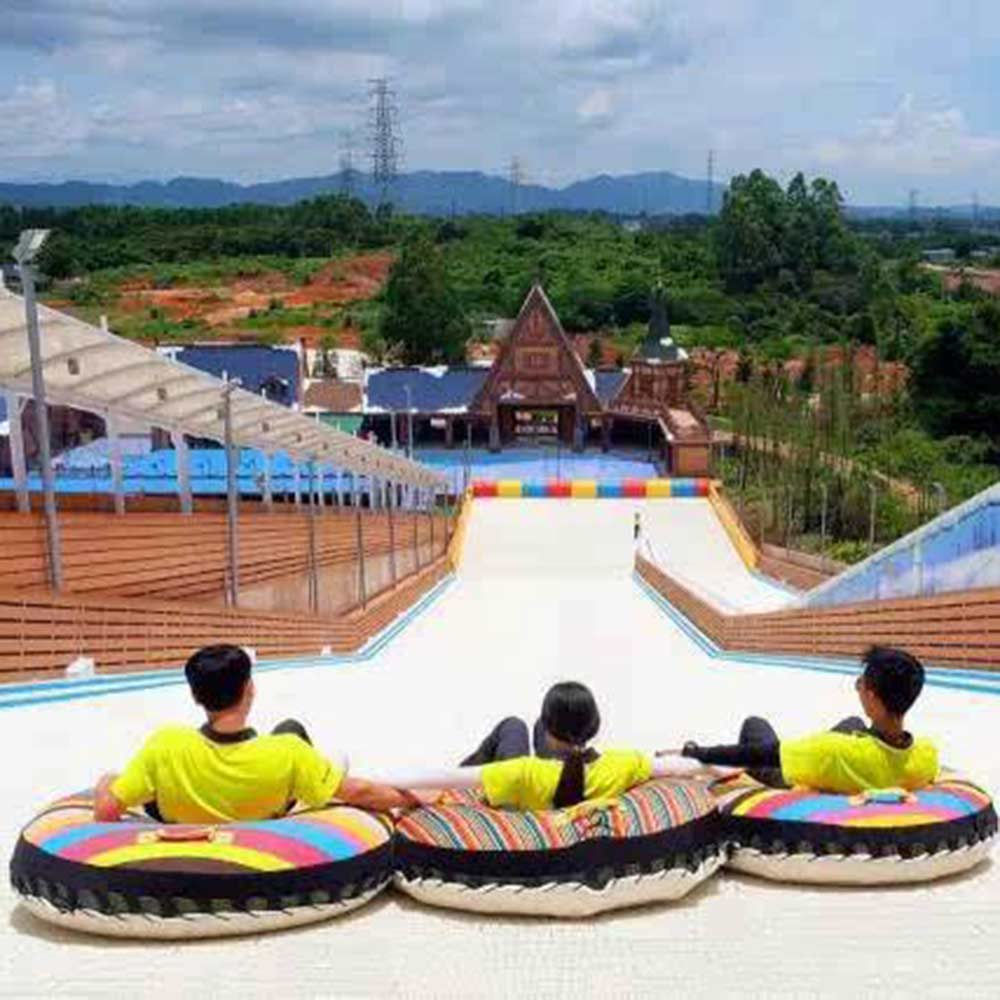 室内旱雪在2018年成为受大众喜爱的游乐项目之一。坐在皮圈上,从高处,快速滑下尾端的缓冲垫上,安全又刺激,让人不亦乐乎。