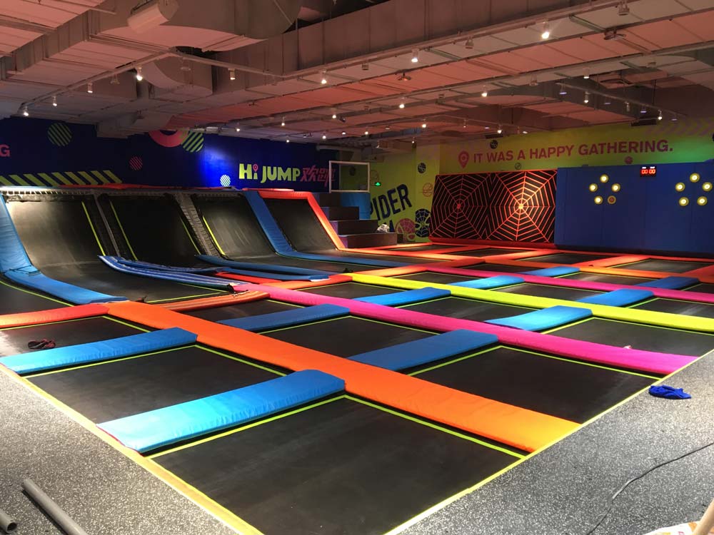 因为这样,除了减肥瘦身外,在释放压力、维护心声平衡方面,蹦床也不输任何一项运动。研究表明,蹦跳不仅有利于成人而且对孩子身体机能、协调性的发展非常有帮助。同时有利于孩子身高的增长和脑发育。以下是大型蹦床的效果图: