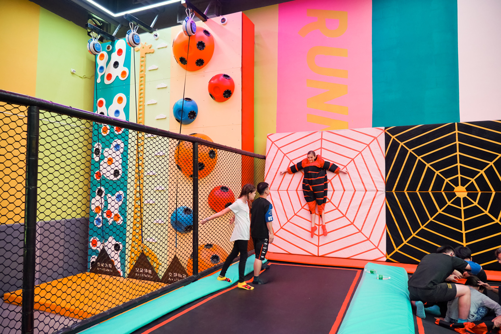 这种设备可一次让多人操作,回本率高,它的结构主要为柔性网面,配合金属外框架以及相关的配套设施,在满足产品的安全规定以外,有部分客户也可以选择金属外框架,例如为了减小重量,使用高强度的铝合金材质,如果是户外大型蹦床设施,则可以使用钢结构。