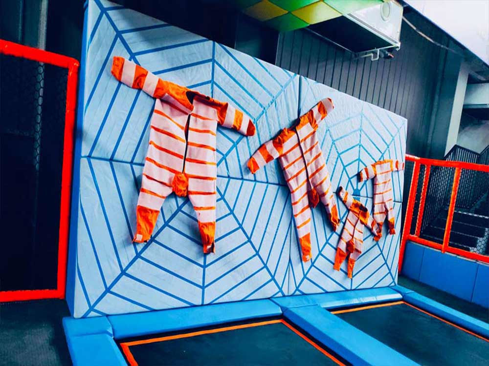 4.蜘蛛墙可以让大家成为飞檐走壁的蜘蛛侠,刺激好玩的同时也带给玩家勇气和决心,心动没有实际行动来得快,那就赶紧到蹦床公园去体验一番吧。