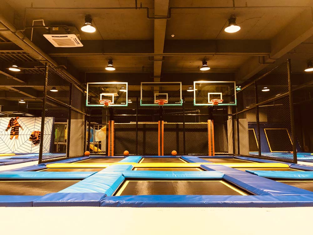 灌篮区:看着NBA球星在赛场上的大灌篮你想体验吗?在蹦床灌篮高手区,你的感受远远不止这些。利用蹦床反弹力飞身起跃将球投入篮筐,轻轻松松变身空中灌篮高手,实现球星飞翔的感觉。
