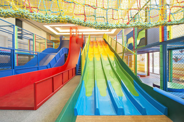 首先要介绍的是魔鬼滑梯中的基础款-----波浪滑梯。波浪滑梯只是在传统滑梯的基础上做了延长和加高,坡度并不是特别高,对于初次接触魔鬼滑梯的小伙伴们来说,波浪滑梯是个不错的选择。 以波浪为元素的外观设计为孩子们营造出水中冲浪的氛围,彩虹般绚丽夺目的多种颜色的组合,真的不要太好看。